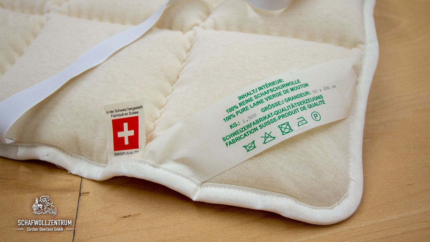 Füllung: 100% Schweizer Schafschurwolle. Die Gewichtsangabe bezieht sich nur auf die Füllung.